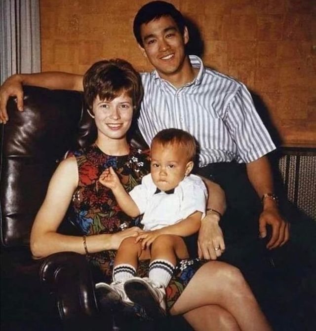 Брюс Лі з дружиною Ліндою та сином Брендоном, 1966 рік.