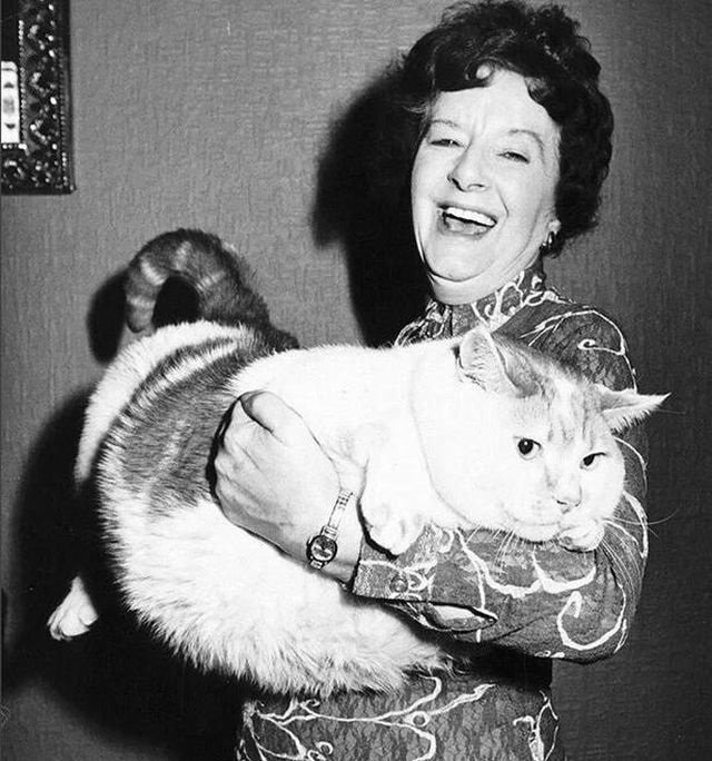 Хільда Джон і її шестирічний кіт Томас O'меллі, віст якого складав 19 кілограмів. Англія, 1977 рік.