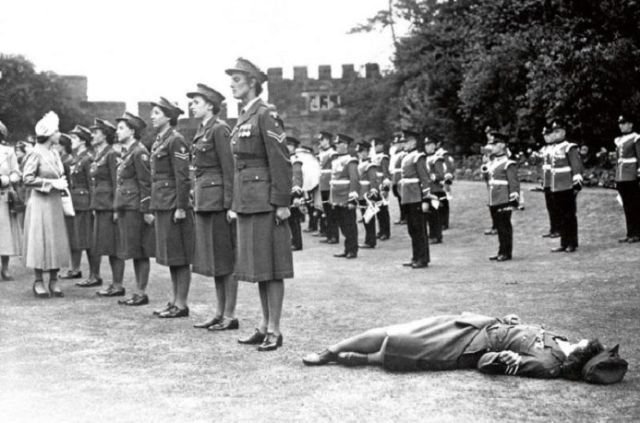 Ця фотографія була зроблена в 1949 році, коли королева Англії була просто принцесою Єлизаветою. У Жіночому королівському армійському корпусі Шрусбері молода жінка знепритомніла через сильну спеку.
