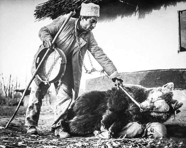 Європейські цигани, які приручали ведмедів, здавна практикували незвичайний спосіб лікування хворої спини. Косолапому просто давали насидитися на спині мученика, і будь-які болі в хребті у людини як рукою знімало. Румунія, 1946 рік.