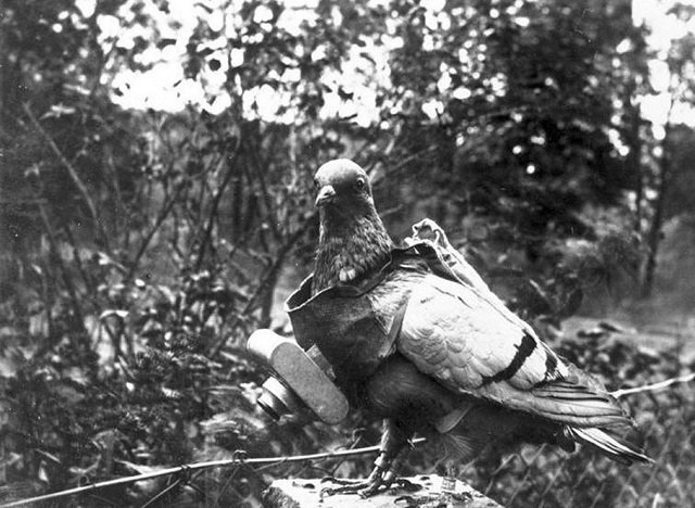 Голуб оснащений фотокамерою для знімків із повітря, 1907 рік.