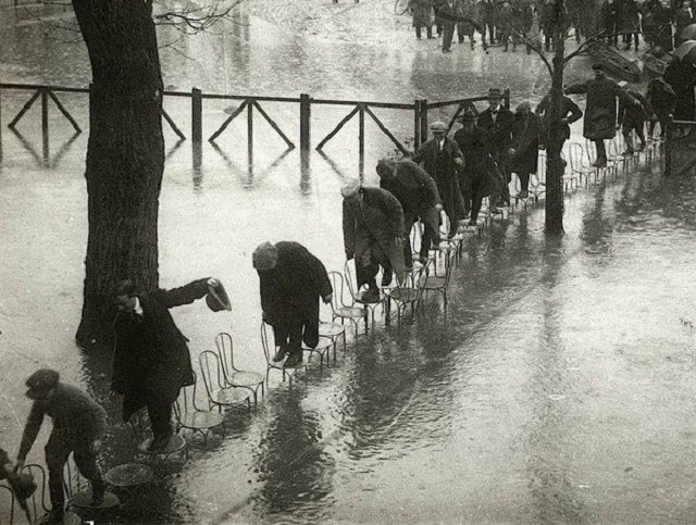 Під час повені парижани пересувалися містом за допомогою стільців, 1924 р.