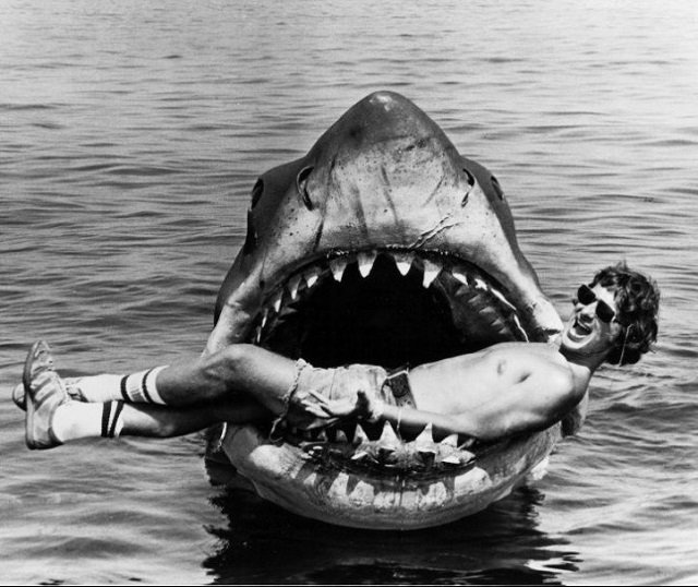 Стівен Спілберг на знімальному майданчику фільму "Щелепи". 1975 р.