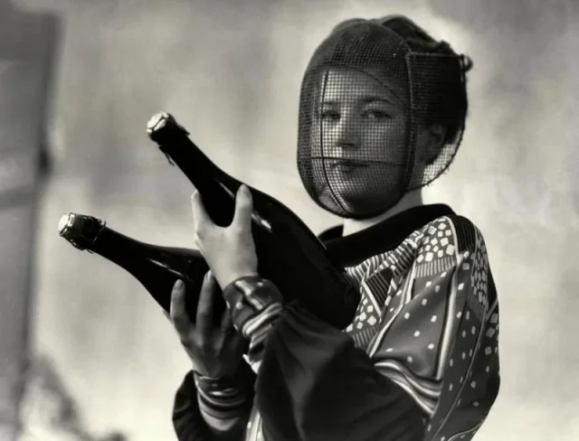 Інспектор з ігристих вин у спеціальній масці для захисту від випадкового вибуху пляшки, Каліфорнія, 1933 рік