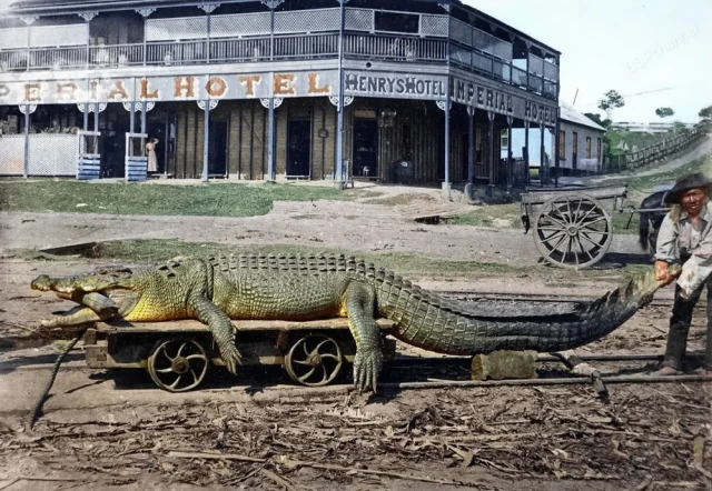 Веслуватий крокодил, спійманий в річці Джонстон, Іннісфейл, Австралія, близько 1903 року.