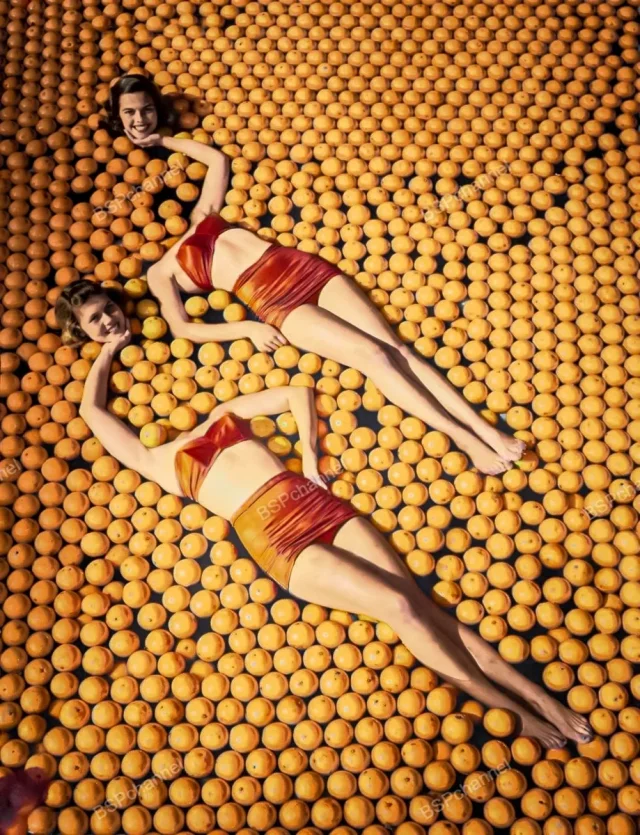 Дівчата у басейні з апельсинами, 1950 рік. ![]()