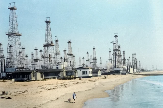 Безліч нафтових вишок на пляжі Веніс-Біч, Каліфорнія, США. Початок ХХ ст.