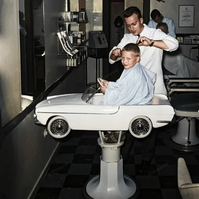 Хлопчик стрижеться у перукарні, 1963 рік.