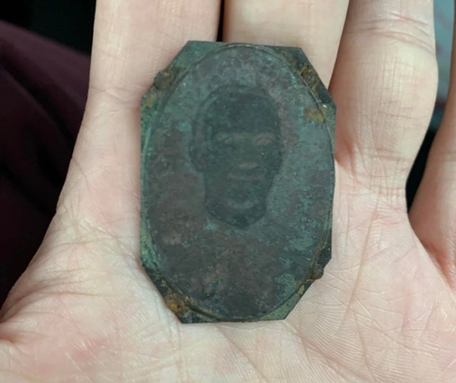 Схоже, це на феротип, одну з перших фотографій на металевій платівці з 1850-х років.