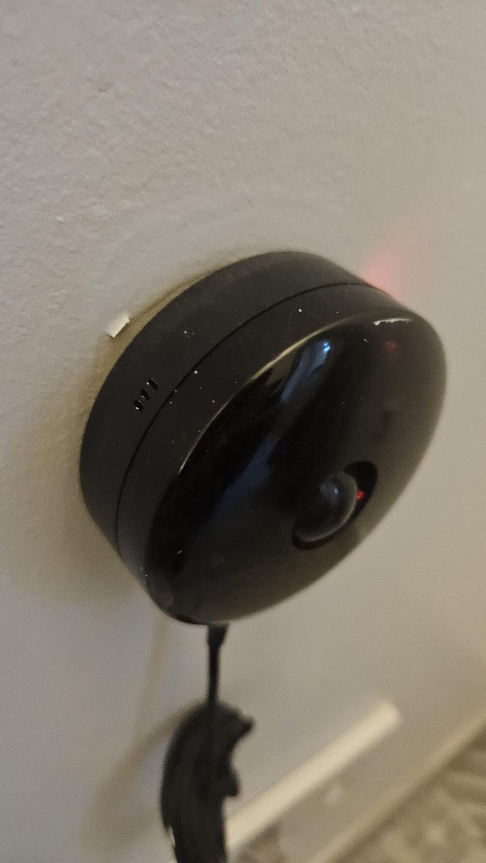 Круглий чорний електронний пристрій на стіні в кімнаті. Кулька в центрі трохи рухається»