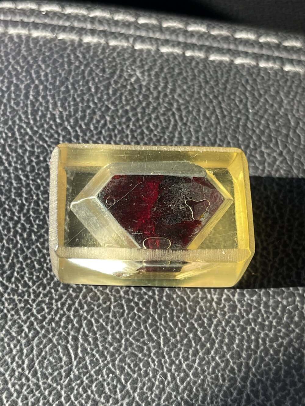 «Незвичайний предмет, усередині щось на зразок червоної смоли. Був куплений на розпродажі.