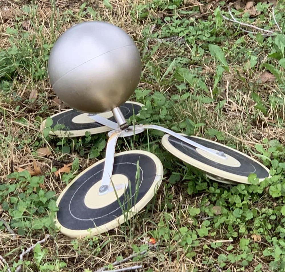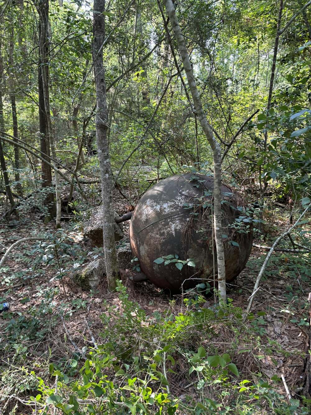 Ця штука була знайдена на моїй новій ділянці. Іржава сфера діаметром близько метра, всередині є отвір.