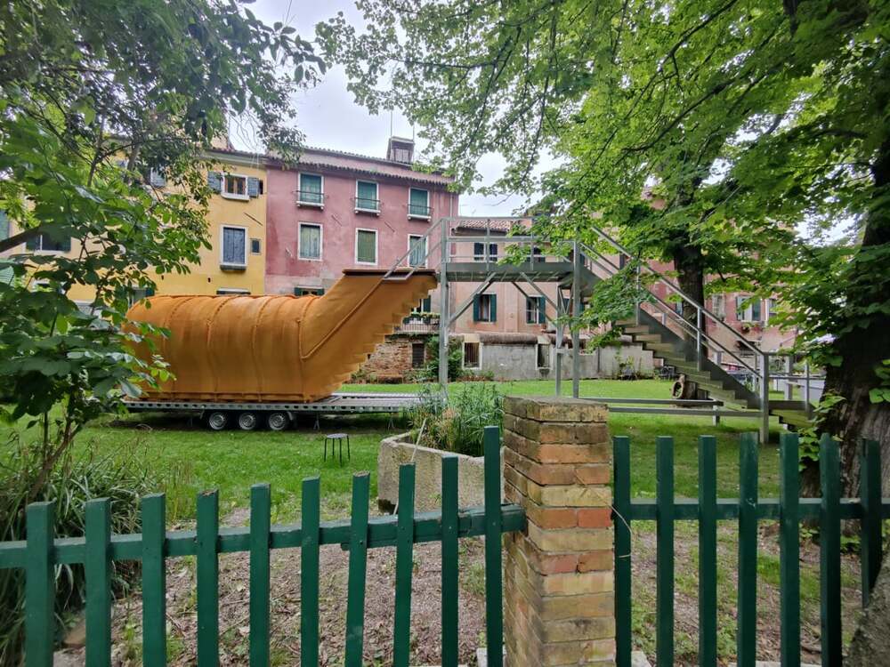 «Жовта споруда висотою 3 метри зі сходами, що ведуть вгору та всередину»