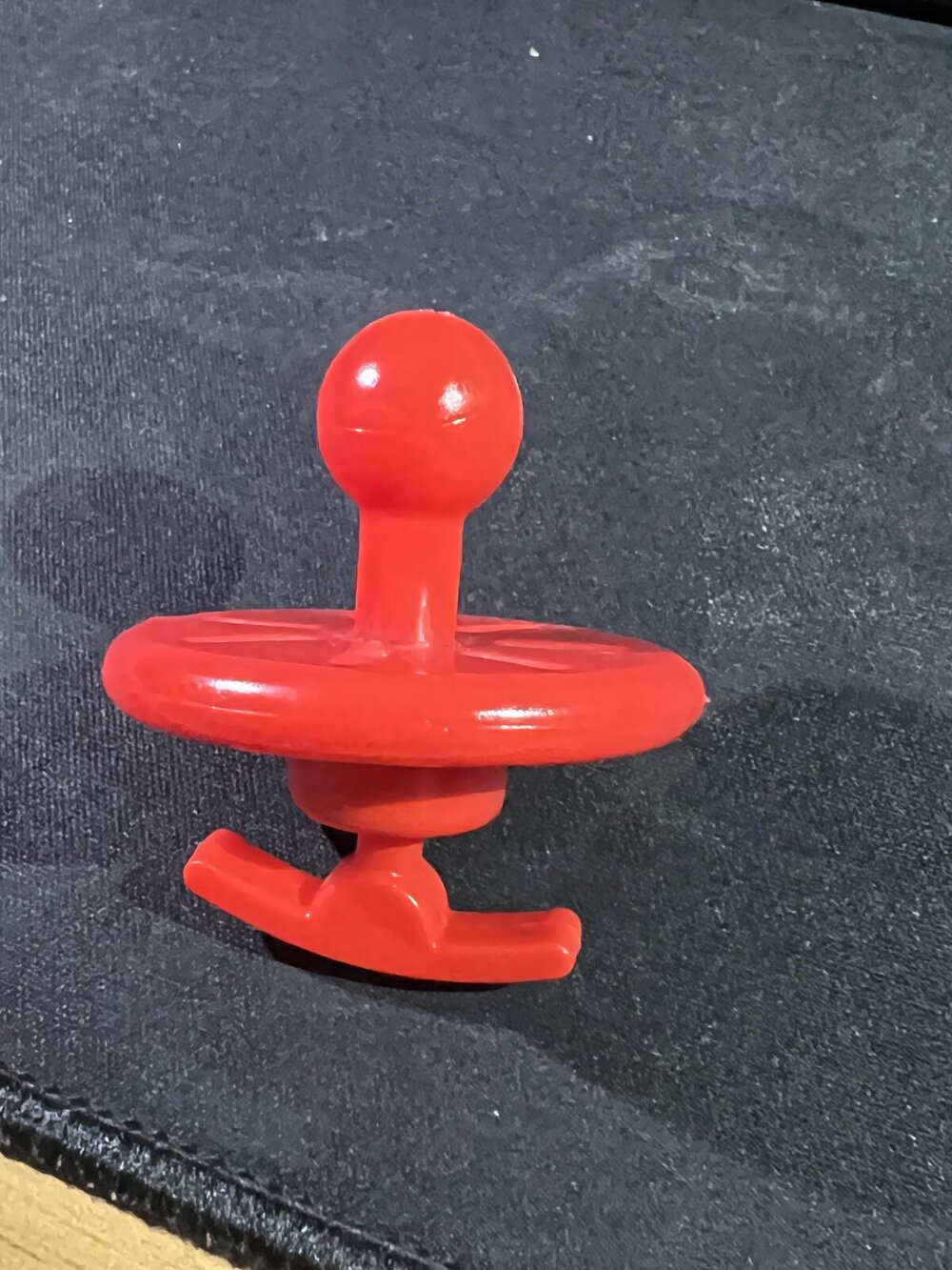 Предмет зроблений з червоного, злегка м'якого пластику. За розміром трохи більше соски. Що це таке?