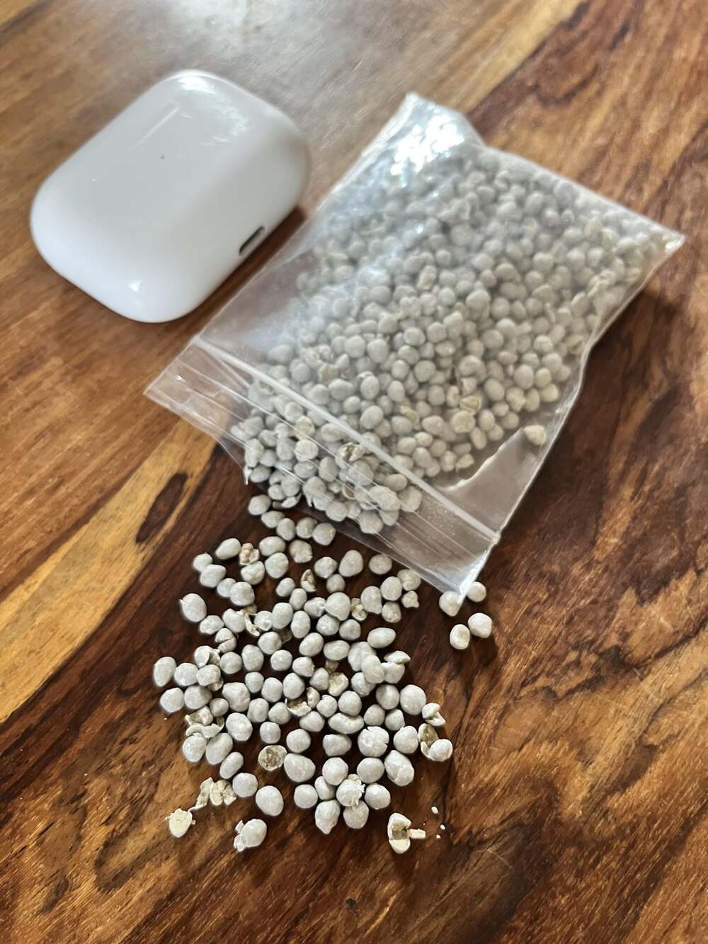 Пакетик з сірими гранулами знайдено на кухонній шафі. Вони неправильної форми та досить важкі»