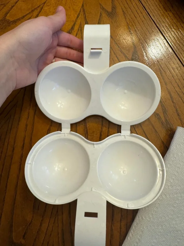 Це контейнер для приготування яєць у мікрохвильовій печі.