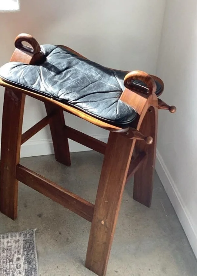 Це верблюже сідло, іноді його використовують як лавку для ніг.
