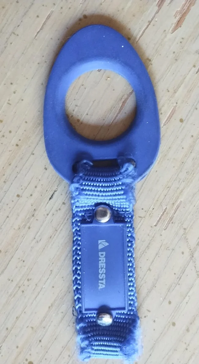 11. Синя гумова або силіконова бирка, прикріплена до стрічки у великий рубчик