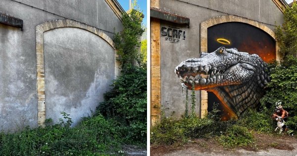 Французький художник із псевдонімом SCAF справді може вважатися людиною мистецтва. Адже йому вдається перетворювати похмурі стіни на яскраві та красиві твори, які прикрашають вулиці. А оскільки він малює 3D-графіті, його роботи виглядають напрочуд живими, ніби вони ось-ось зістрибнути з кам'яних плит на волю. Таку творчість назвати вандалізмом не назвеш.