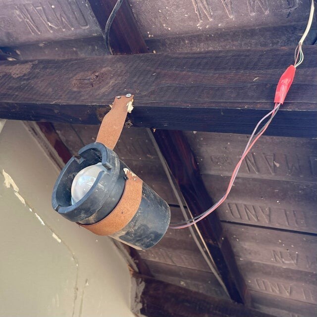 Лампочка в попільничці підвішена на шкіряному ремінці
