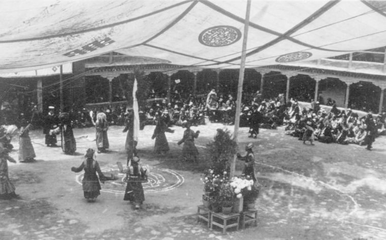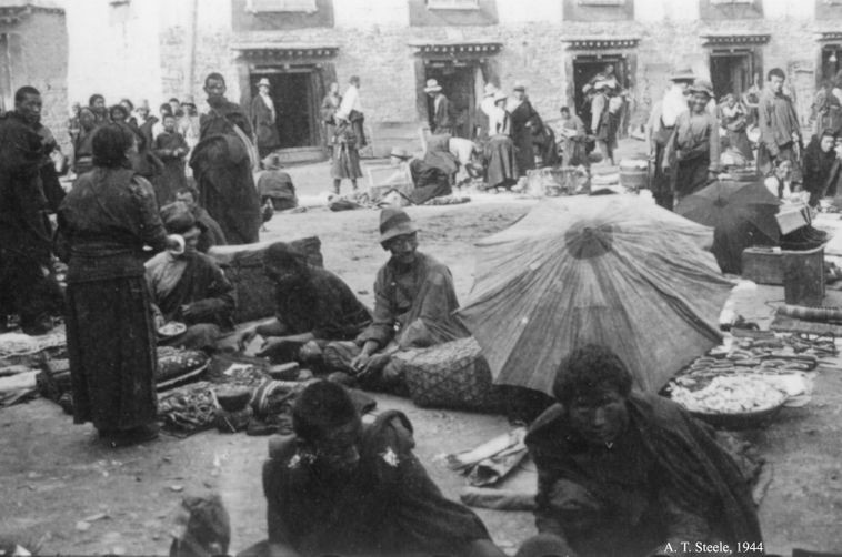 Американський фотограф та кореспондент Арчібальд Троян Стіл двічі відвідав Лхасу, у 1939 та 1944 роках, щоб поспостерігати за юним Лхамо Тхондрубом, який у чотири роки був визнаний реінкарнацією попереднього духовного лідера Тибету і став 14 Далай-ламою.