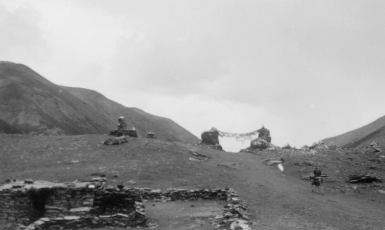 18. Арка з каміння і молитовних прапорців над перевалом Харо-ла шляху до Лхасе, 1944 р.