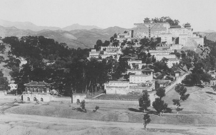 28. Буддійський пам'ятник, чортен, на тлі палацу, 1944 рік