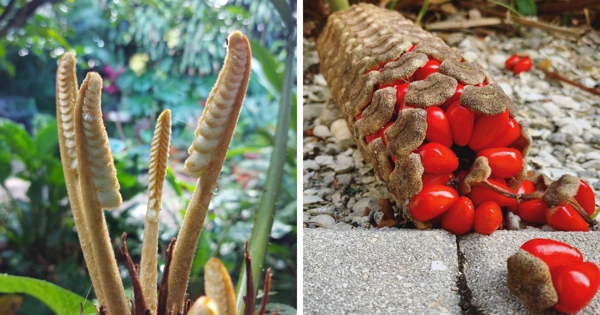 На фотографії зліва замія тільки готується цвісти. Праворуч представлені вже дозрілі цвітіння.