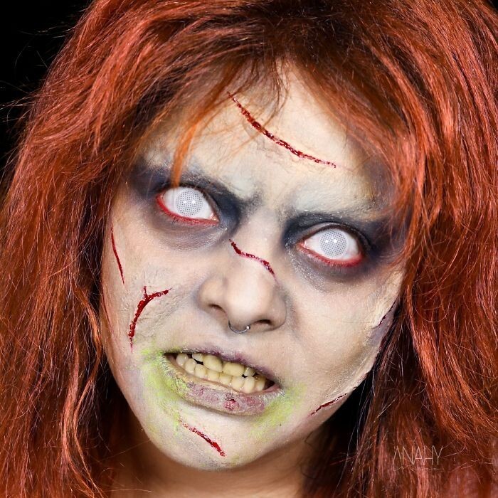 Анаї Нуньєстату-майстер і візажист з Лас-Крусес, Нью-Мексико. Разом із чоловіком вона працює у сімейному тату-салоні Atom Bomb Studio, а в вільний час займається візажем для фільмів та заходів. Ось такі Образи запропонувала Анаї для по-справжньому моторошної вечірки на Хелловін.