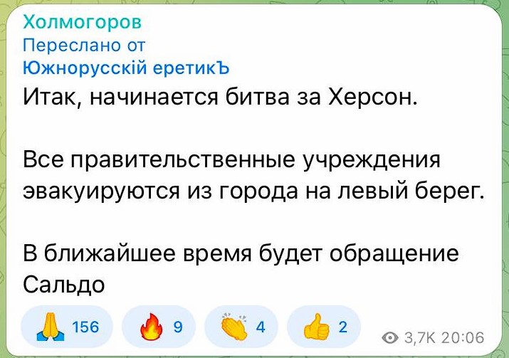 - Жодної паніки немає, але пропагандони виють про наступ на Херсон та евакуацію колаборантів.