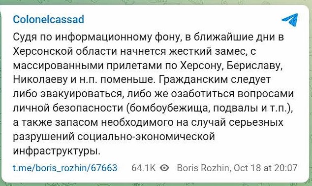 Вторгнення росії в Україну. Хроніка за 18 жовтня