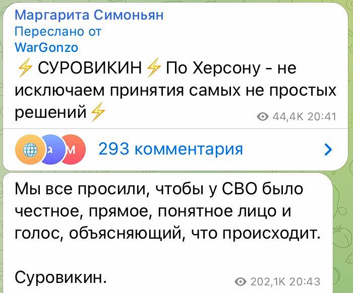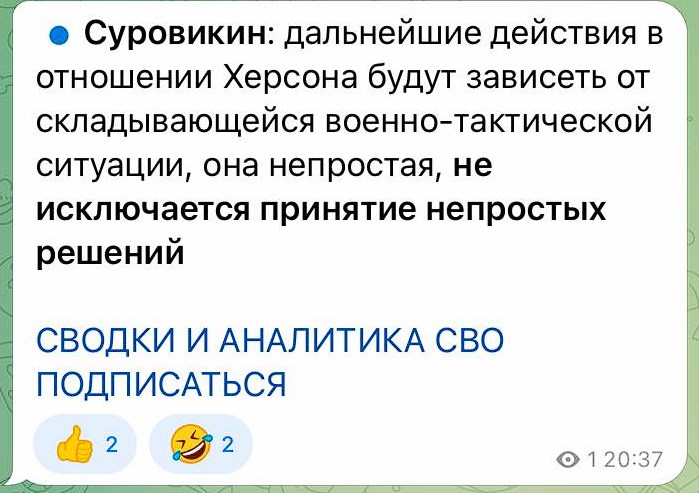 - Паніки немає навіть у командувача угрупуванням військ Росії Суровікіна.
