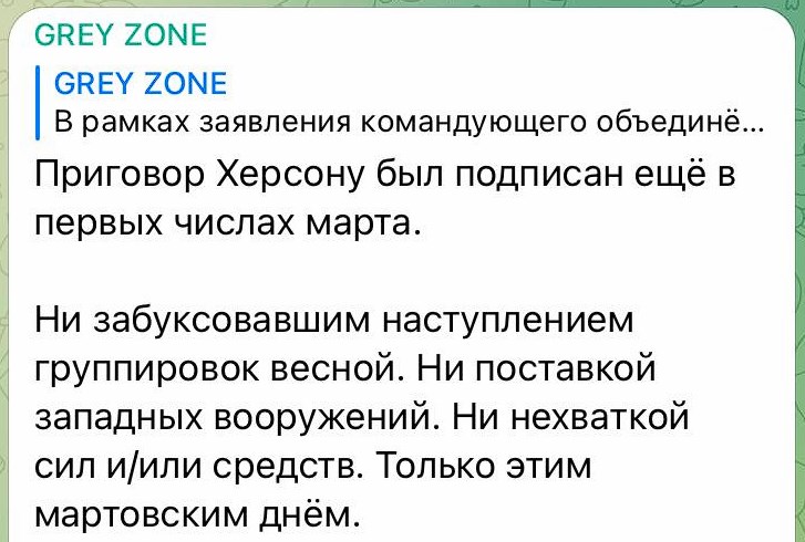 – До речі, тут ПВК «Вагнера» вже підписав вирок Херсону.