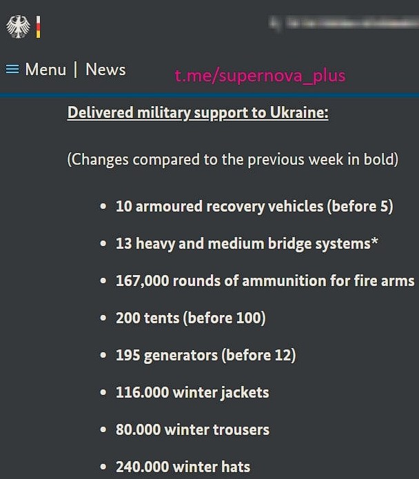 - Уряд Німеччини звітував про передачу Україні зимових форм.