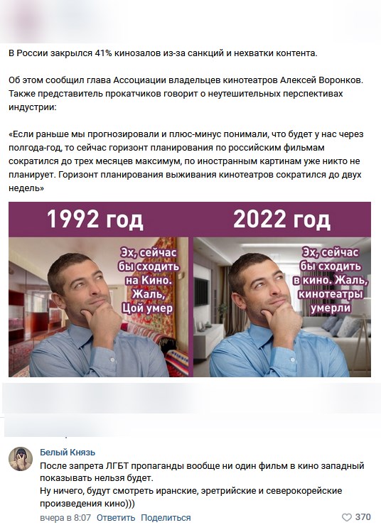 - Кінотеатри зазнають труднощів у Росії, адже там війни немає.