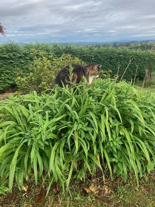 Наша кішка вважає себе птахом. Вона п'є воду з листя, хоча має миску з водою