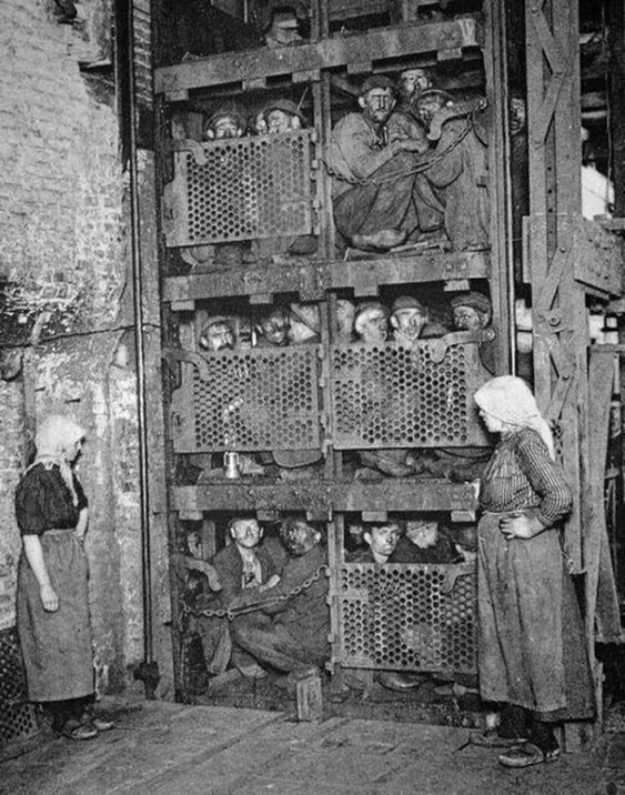 Кінець робочого дня, ірландські вугільники піднімаються з шахти у Бельгії, 1900 рік