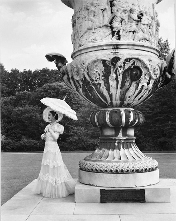 Королева Єлизавета (королева-мати) з вазою Ватерлоо в саду Букінгемського палацу в Лондоні, 1939. Фотограф Сесіл Бітон