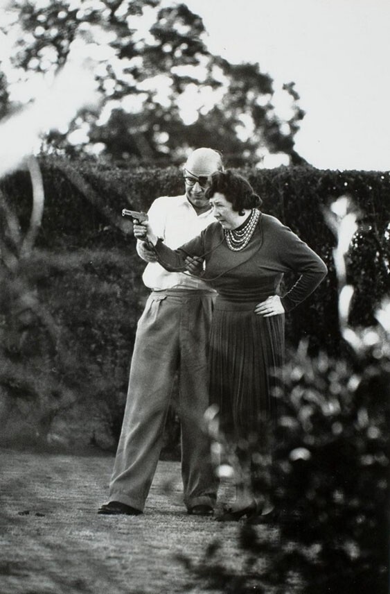 Чоловік вчить жінку стріляти з пістолета, 1961 року. Фотограф Іен Беррі