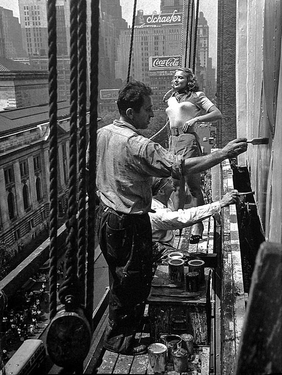 Натурниця та художники. Робота над рекламним щитом, Нью-Йорк, 1947. Фотограф Френк Бауман