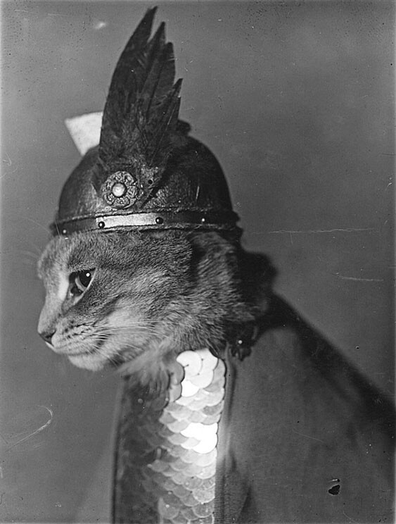 "Брюнхільда", 1936. Кішка в шоломі вікінга. Фотограф Адольф Е. Вейдхаас