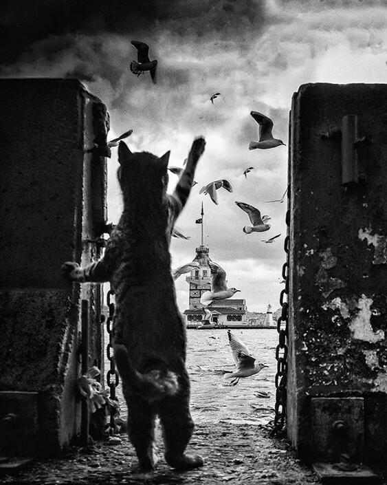 Кіт вітає чайок у Стамбулі. Фотограф Яшар Коч