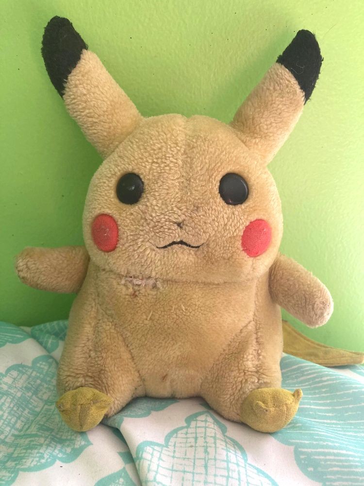 «Мій плюшевий пікачу 1998 року, подарований мені моїми батьками, які думали, що це миле мишеня, і гадки не мали, що мені подобаються покемони»