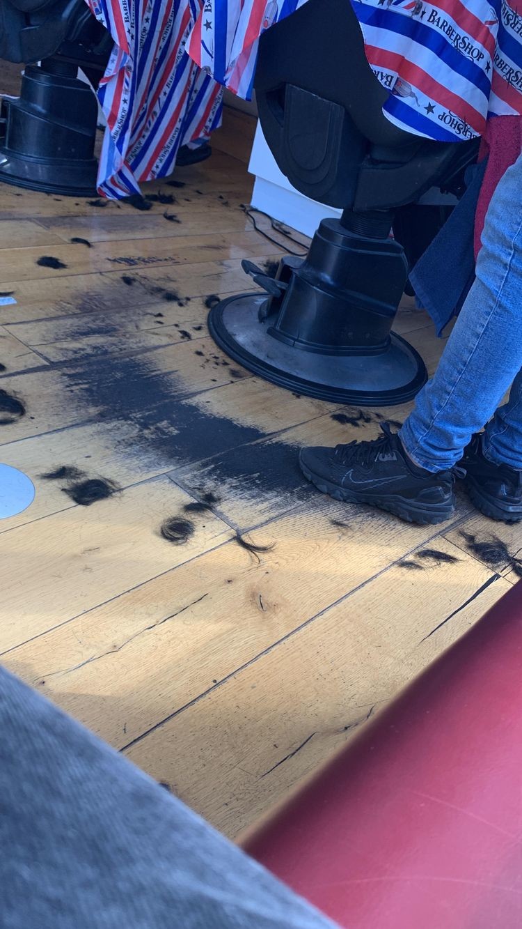У цій перукарні утворилися чорні каблучки на підлозі від майстрів, які роками ходять навколо крісла.