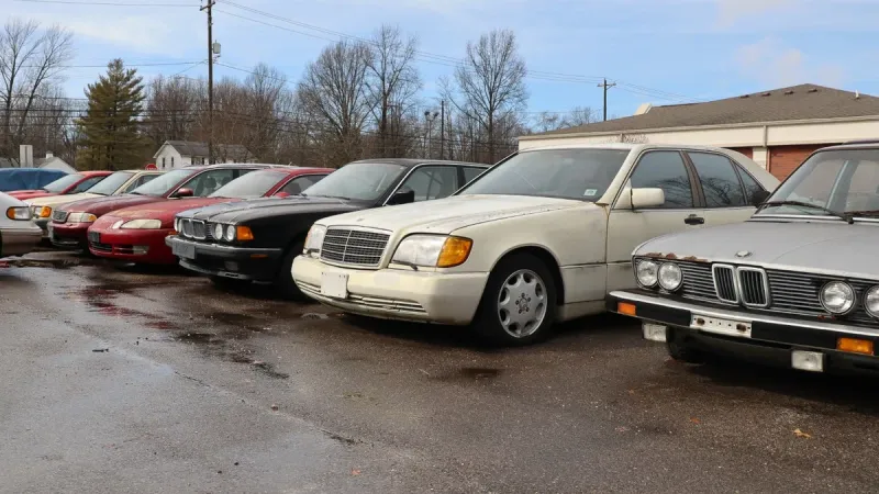 На парковці перед дивним дилерським центром в Огайо, США, стоять десятки класики 90-х з Європи, Японії та США, які повільно приходять у непридатність і перетворюються на мотлох.