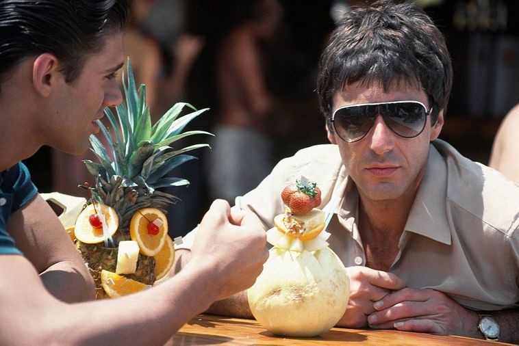 19. Аль Пачіно зі Стівеном Бауером на зйомках фільму «Обличчя зі шрамом»