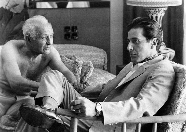 36. Аль Пачіно в ролі Майкла Корлеоне з Лі Страсбергом у сцені з фільму «Хрещений батько 2» Френсіса Форда Копполи, 1974 рік