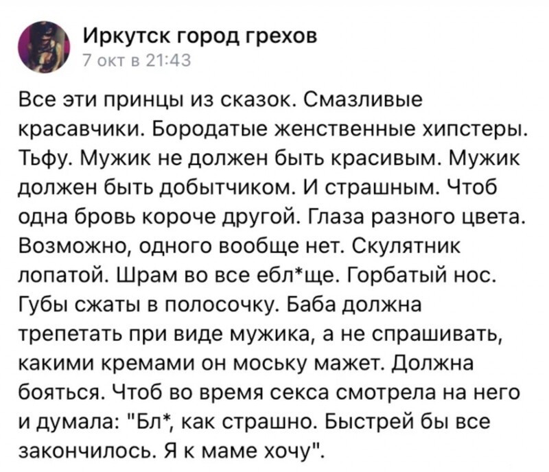 Під час перегляду цієї посади відбудеться магія! Все, без винятки, чоловіки впізнають у сьогоднішніх героях себе, а жінки зможуть побувати у головах представників сильної половини людства.