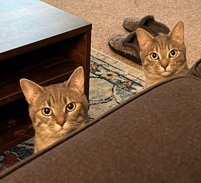 "Місяць тому мій кіт не повернувся з прогулянки. Пізніше я знайшла його і принесла додому. Сьогодні мій кіт повернувся. Тепер у мене два майже однакових кота"