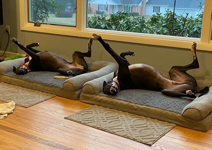 "Ми взяли цуценя (праворуч) з притулку. Нещодавно до нас двір забіг цей песик - вони виявилися напрочуд схожі. Здається, що це просто прийшла його версія з майбутнього, щоб попередити про чимось"